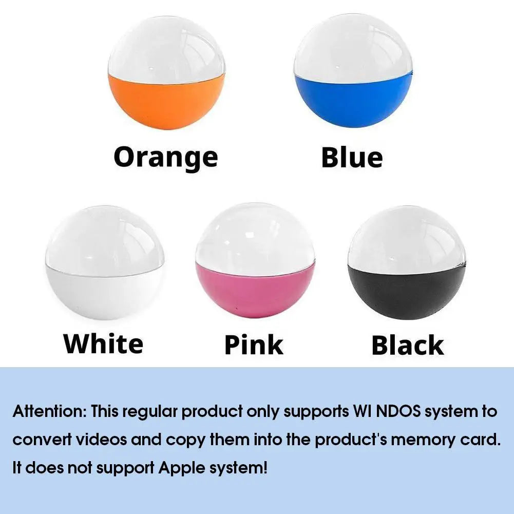 💡 Nota: Para transferir archivos, conecta la bola a tu computadora con el cable USB incluido. Asegúrate de que los videos estén en formato MP4 y las fotos en JPG.